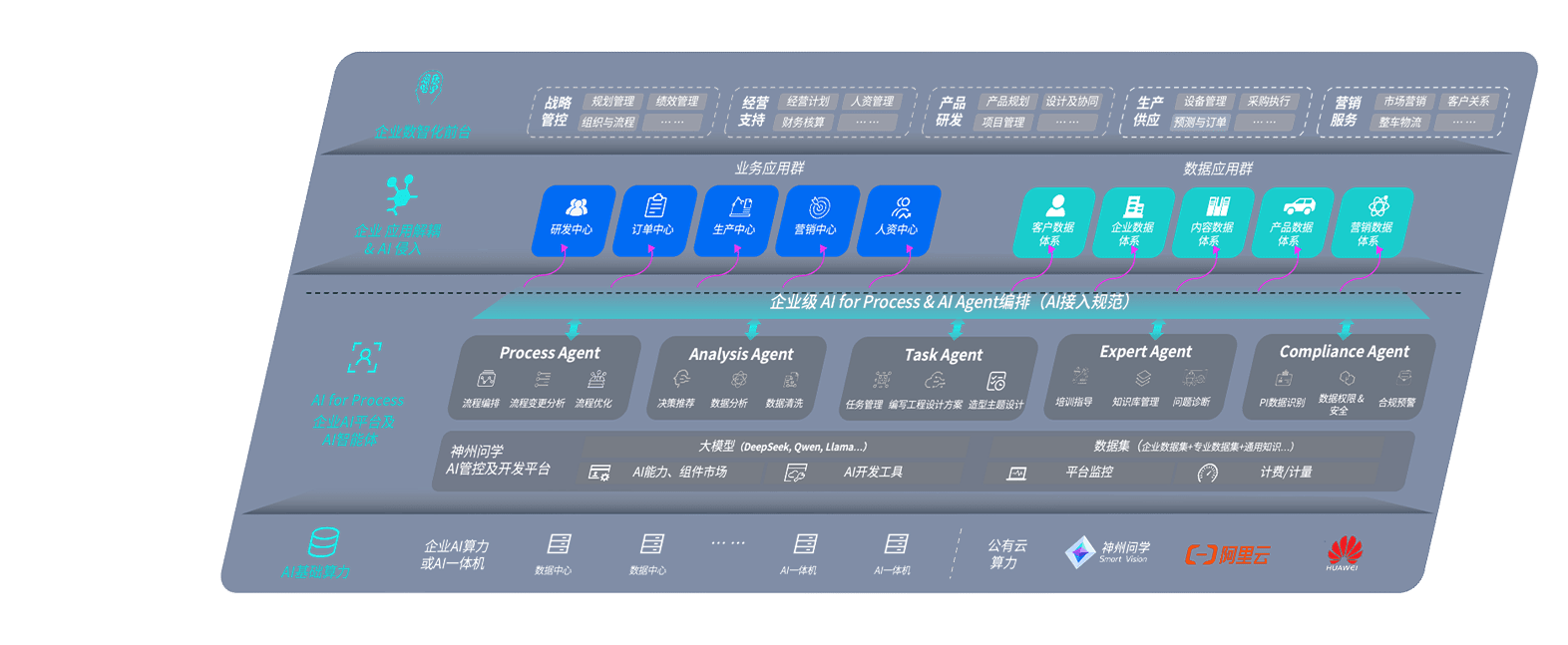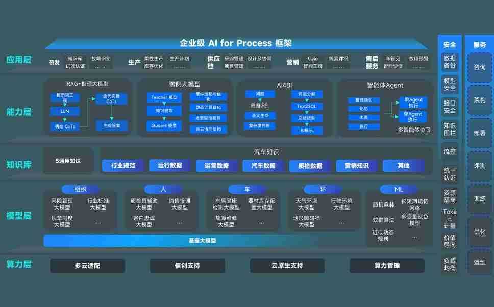 端到端的一站式AI工作空间深度融合了从企业战略规划到日常经营的全流程业务板块,,,,定向解决车企内部领域多、、、、部门多、、、、链条长、、场景碎片化等难题,,支持车企快速构建以AI为核心的生产力写作体系,,,,实现任务执行与AI能力的无缝集成与交互